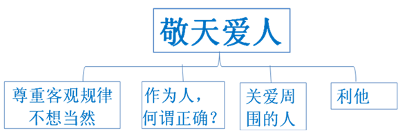 3. 敬天爱人体现在:工作中相互协调,相互帮助。出现问题敢于担当,不找客观理由或者相互推诿。