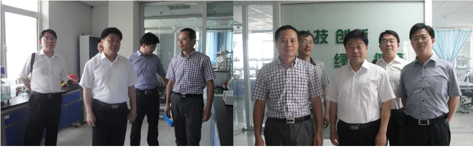 在公司董事长孙学英和总经理何银杰的陪同下,刘局长一行分别参观了公司事业部、合成部、贸易部及研发中心,并对研发中心进行了重点了解。