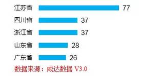 从国内省份来看,江苏省77件生产批文排名第一,占内企新批生产批文数的19%,其次是四川和浙江。